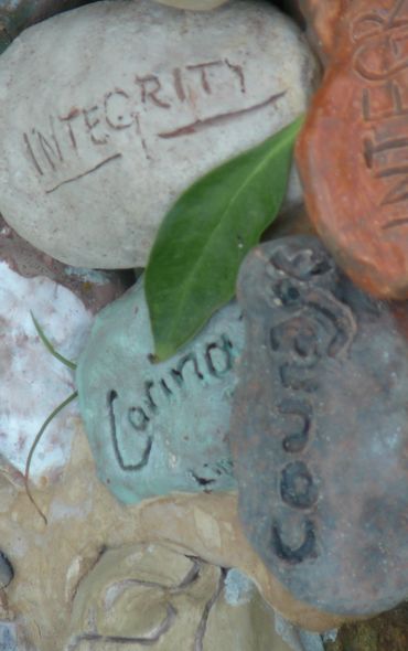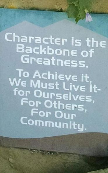 The City Character Rock Garden at the Oso Viejo Trailhead in Mission Viejo (just south of Marguerite Pkwy and Estanciero) was for a Tierra Nativa event volunteer project with over 2000 residents participated making rocks and laboring in mosaic and planting work to create it. The garden includes a sign with a quote I authored: “Character is the backbone to greatness. To achieve it, we must live it. For ourselves, For others, For our community.”